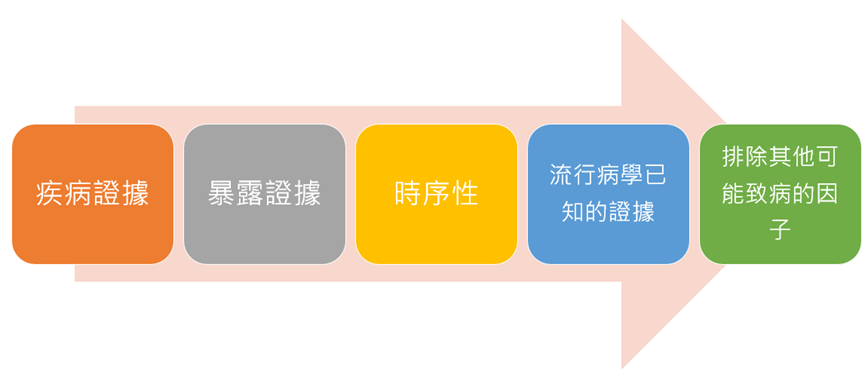 在做「職業病」認定時,需由職業醫學專科醫師根據以下【職業病診斷五大準則】