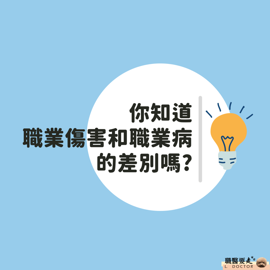 首先,’’職業災害’’可區分成兩大塊:「職業傷害」與「職業病」。