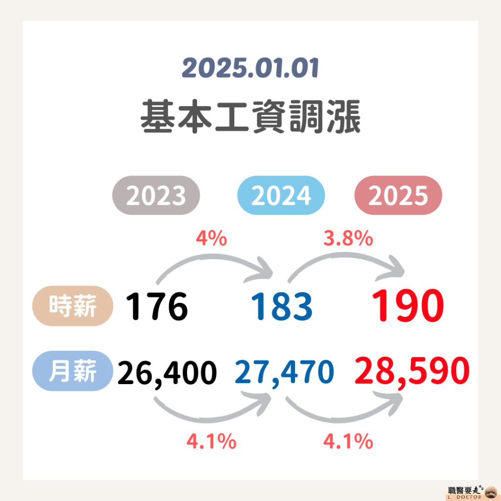 2025/1/1新增:根據內政部最新公告,自2025年1月1日起調升基本工資,月薪調升至28590元,時薪調升至190元。薪資調整幅度約4%,領基本時薪或基本工資的勞工,若老闆沒有調薪,即觸法唷!