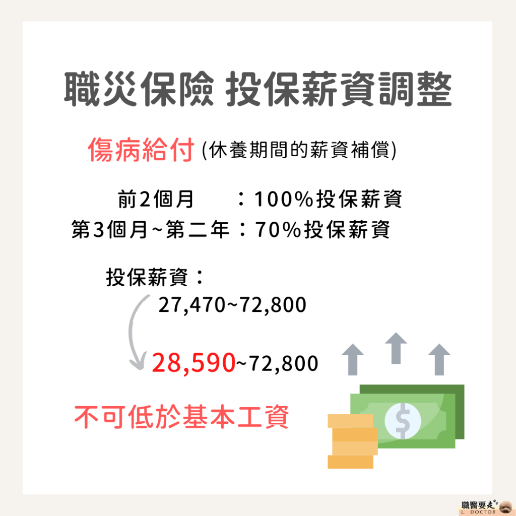 隨著基本工資調升,職災保險的最低投保薪資也一併調升,