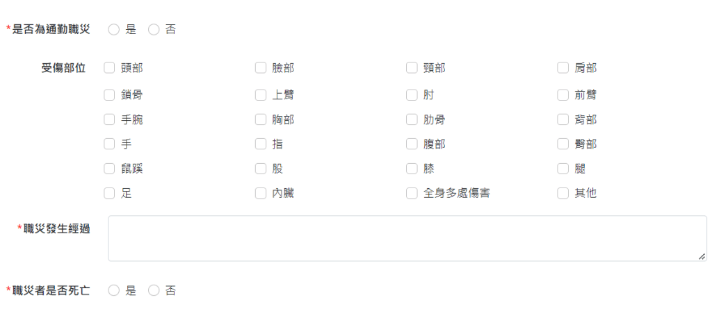 通報時,不需要申請帳號,可直接透過網頁將發生職災及通報者資訊等登錄於系統中!