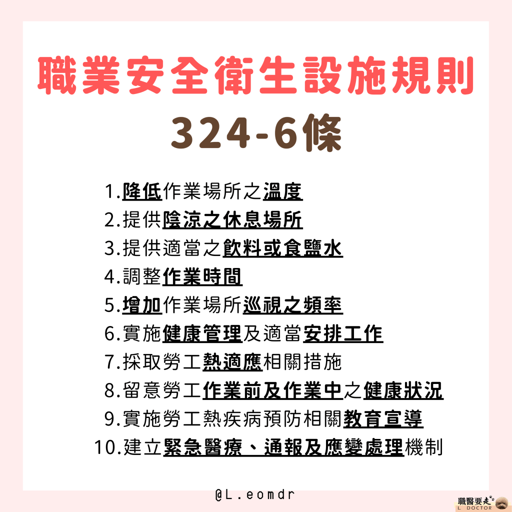 為了保護戶外工作者在高氣溫之下工作的安全,勞動部職業安全衛生署針對高氣溫戶外工作者頒布「高氣溫戶外作業勞工熱危害預防指引」,並在114.6.20更新為第三版!以下用圖文描述其內容。