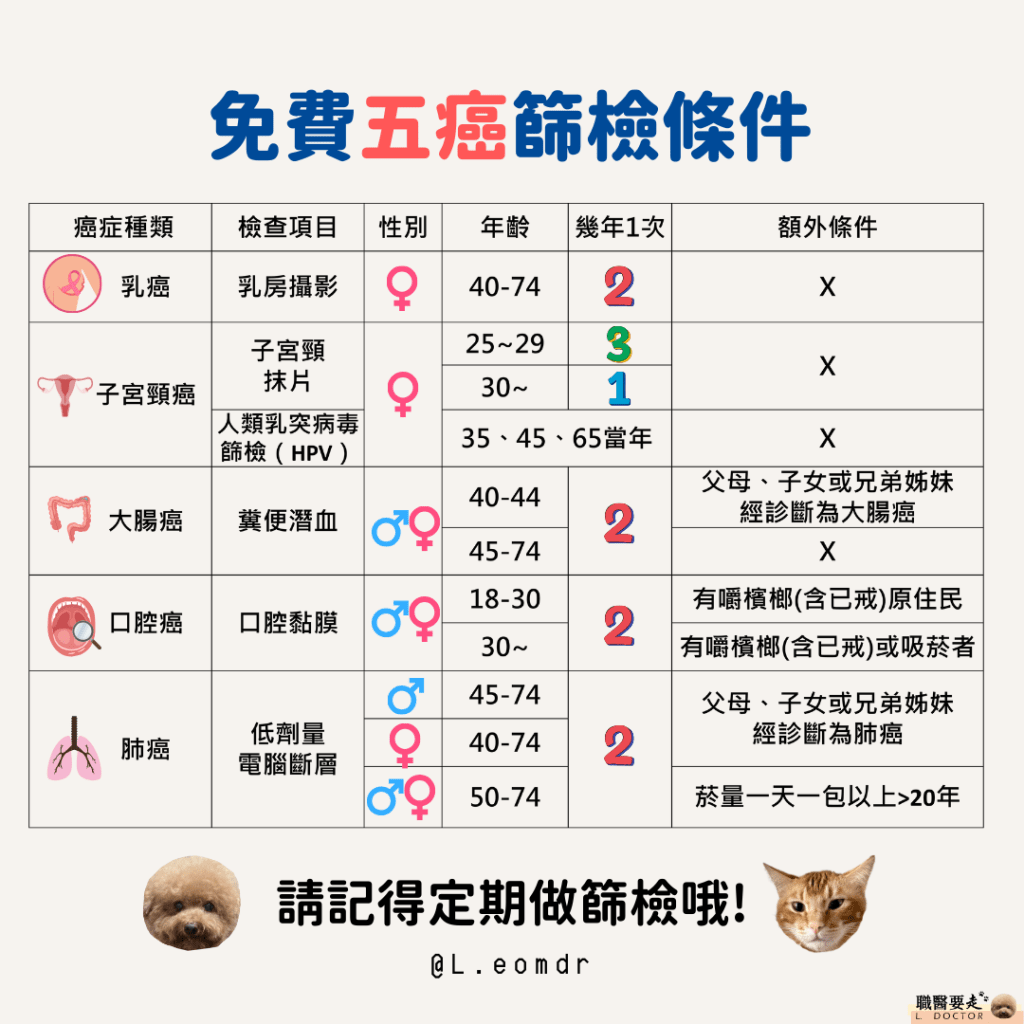 以下幫大家整理免費「五癌篩檢」的條件總整理