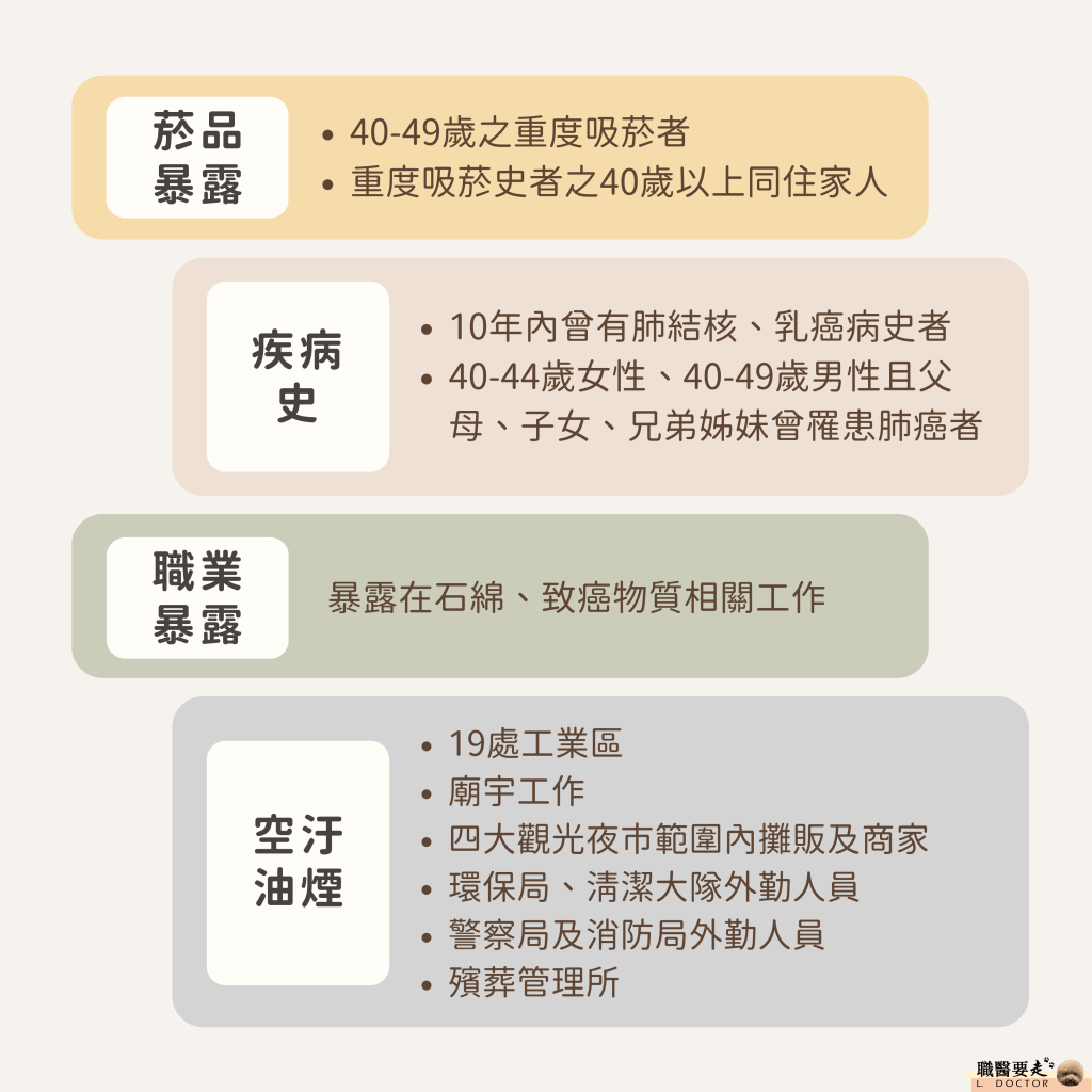 3. 40-44歲女性、40-49歲男性且父母、子女、兄弟姊妹曾罹患肺癌者