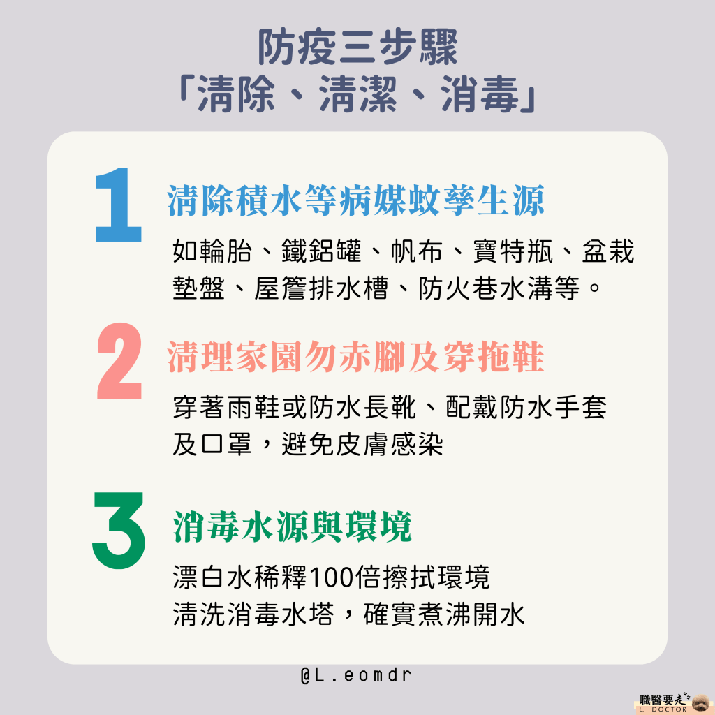防疫三步驟「清除、清潔、消毒」