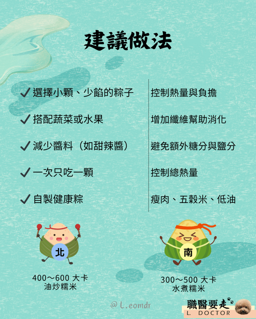 粽子雖然不算是健康食物,但大部分的人都還是會吃到,因此用較健康的吃法,可以讓身體不至於增加太多負擔,也能享受美味的粽子。