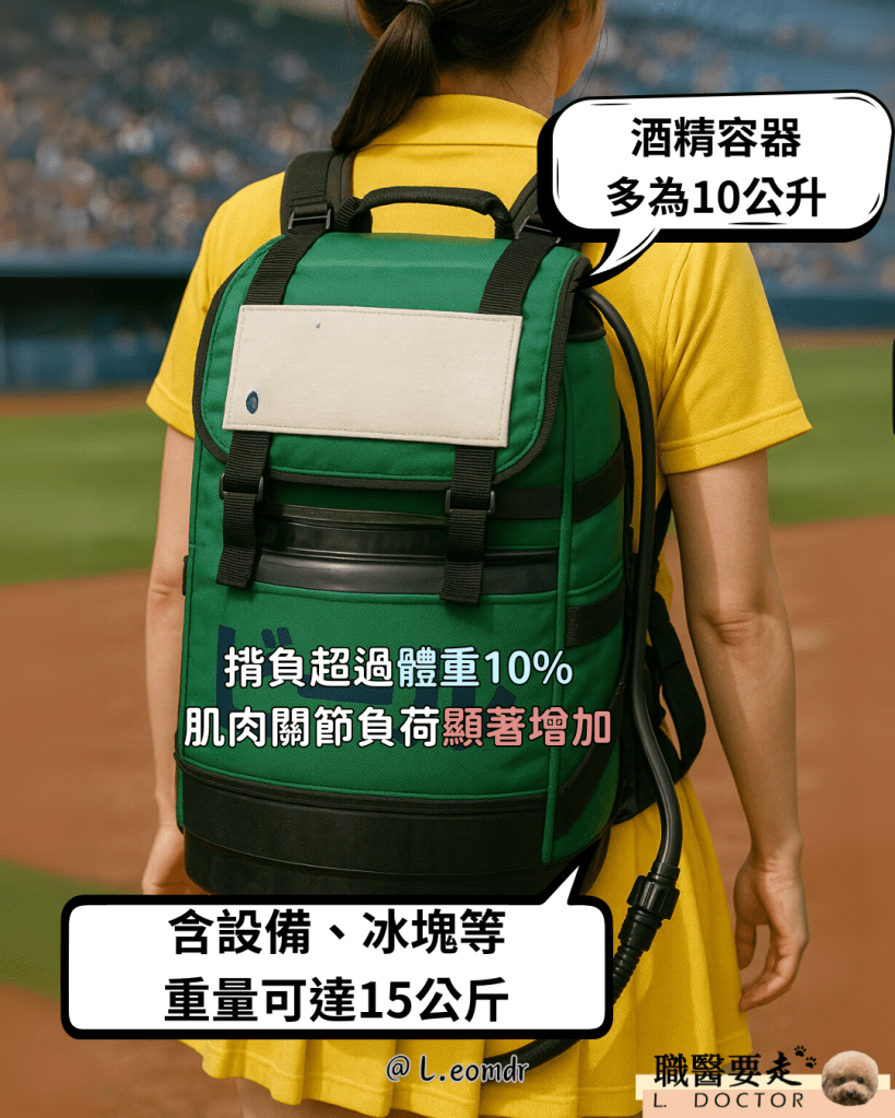 根據網路上的資訊,這些銷售員揹負的酒精容器多為10公升,若將酒精、設備、冰塊等重量加總,揹負的重量可能達15公斤重!