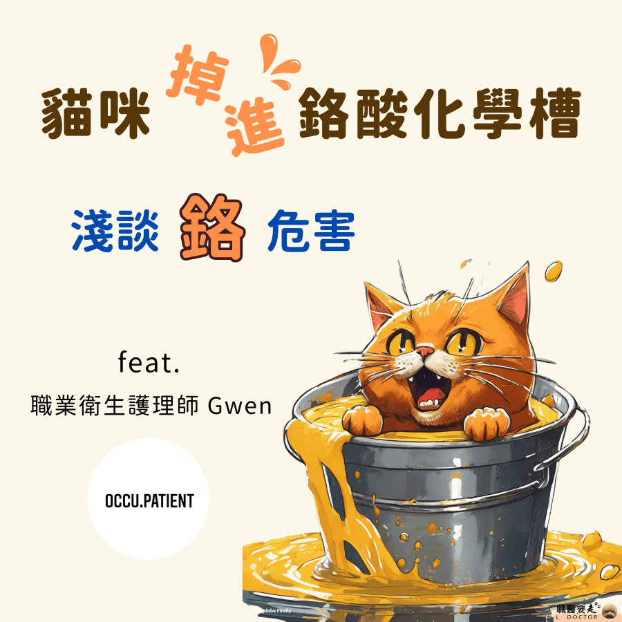 貓咪掉進鉻酸化學槽!淺談「六價鉻」的健康危害 On 2024 年 3 月 28 日2024 年 10 月 22 日 由職醫L撰寫In 職業醫學發表留言 日本廣島一家電鍍廠,113年3月10日晚間,遭到小貓闖入。隔天上午員工發現六價格化學槽外有貓腳印,經過調查貓咪 … 繼續閱覽 貓咪掉進鉻酸化學槽!淺談「六價鉻」的健康危害
